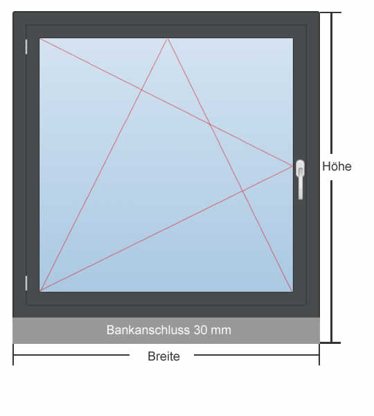 Zwei weitere Aspekte müssen Sie bei der Höhe beachten: Sollte ein Bankanschluss geplant sein, sind zusätzlich 30 mm abzuziehen. Ist über dem Fenster ein Rollladenkasten angebracht, müssen Sie die Einbauluft nur einmal abziehen, da Rollladenkasten und Fenster direkt verbunden werden.